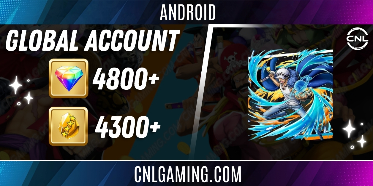 Android | Global | Winner Island Trafalgar Law | 4800+ Gems | 4300+ 4 Stars Gold Fragments | 60+ Character 4 stars
