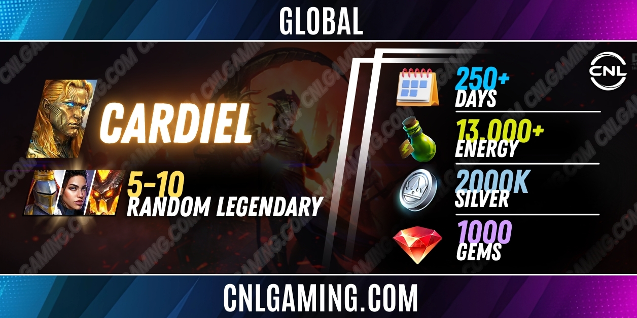 Global Cardiel + 5-10 random Legendary | 250+ Days | Energy 13000+ | Silver 2000K | 1000 Gems