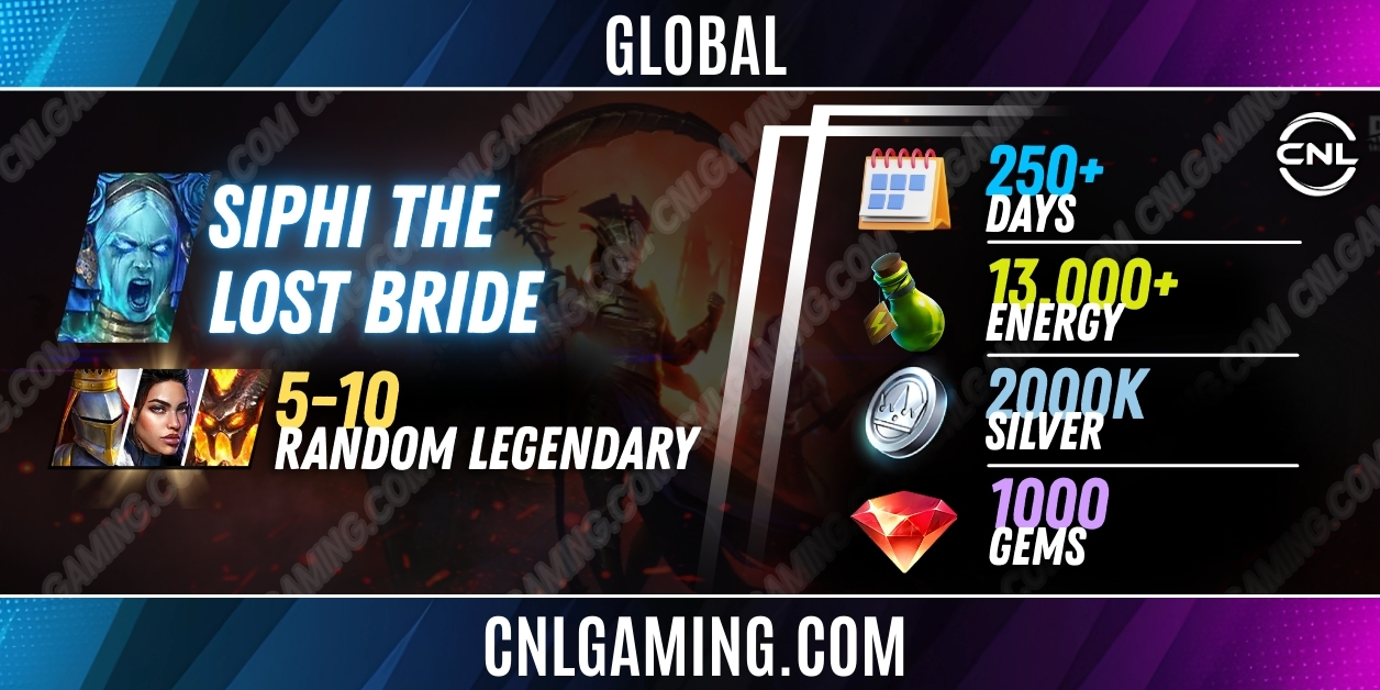 Global Siphi the Lost Bride + 5-10 random Legendary | 250+ Days | Energy 13000+ | Silver 2000K | 1000 Gems