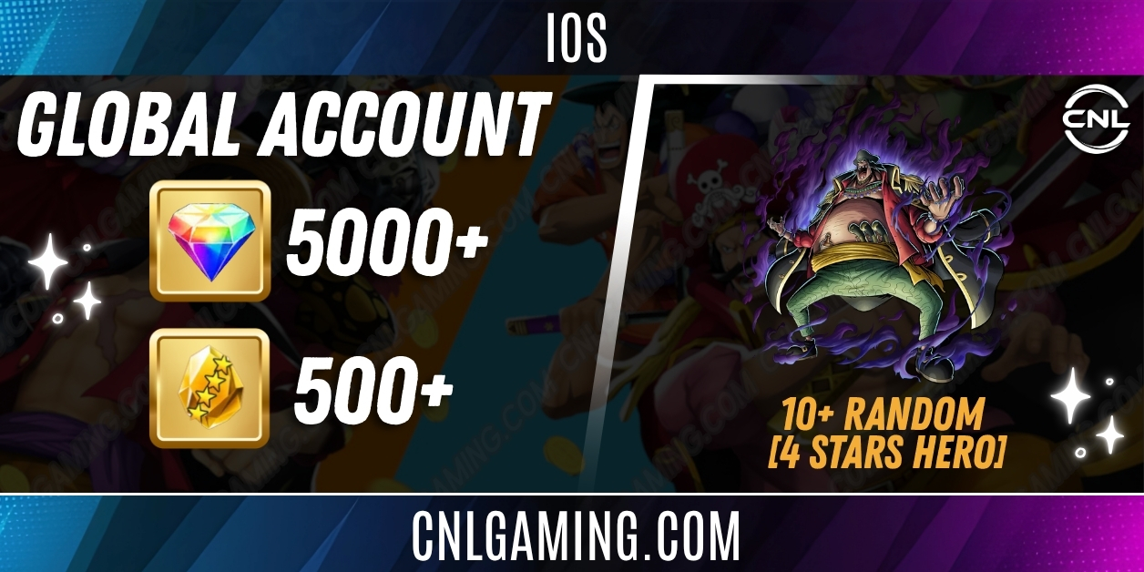 IOS | 5000+ Diamonds | Gear 5 Luffy | 500+ Fragments | 10+ 4-Star Heroes
